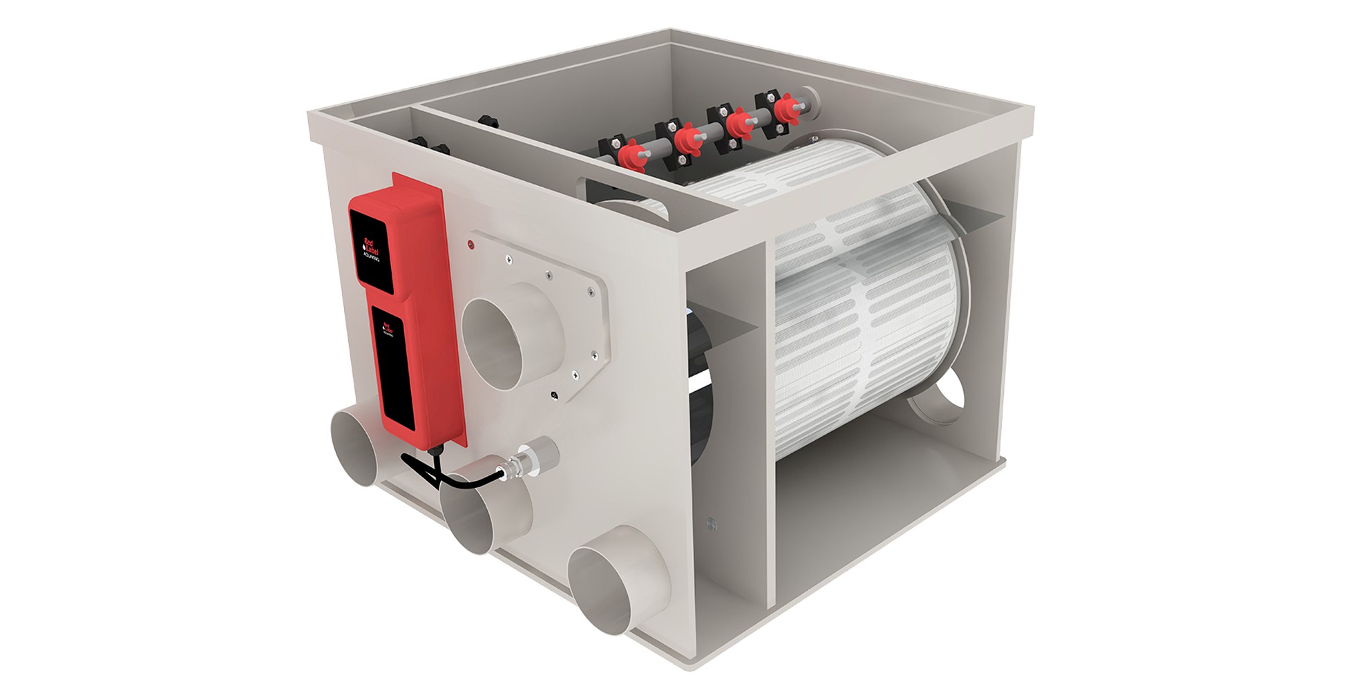 Alle Red Label BASIC filters zijn standaard uitgerust met unieke extra’s, waaronder een ingebouwde spoelpomp. Dit zorgt voor minder geluidsoverlast, een compactere inbouw en een efficiëntere werking van het drumfilter. Daarnaast is het filter voorzien van een ingebouwde UVC-unit met een 40 Watt INOX-lamp, die algen, bacteriën en schimmels effectief vernietigt. Het resultaat is kraakhelder en gezond vijverwater. Doordat de UV-unit geïntegreerd is, kan externe UV-apparatuur in het leidingsysteem achterwege blijven, wat een optimale doorstroming bevordert.