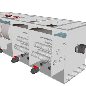 Het drumfilter fungeert als mechanisch voorfilter en verwijdert op een efficiënte en gebruiksvriendelijke manier zeer fijne vervuiling tot 70 micron uit de waterstroom. Hierdoor wordt het grove én fijne vuil al in een vroeg stadium afgevoerd, wat de belasting op de biologische filtering aanzienlijk verlaagt. De constructie uit hoogwaardige materialen zoals RVS en polypropyleen (PP) garandeert een lange levensduur en een betrouwbare werking.