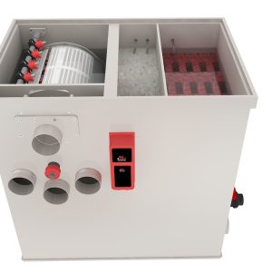 Met een interne spoelpomp, ingebouwde UVC-unit, geïntegreerde luchtbuizen en een garantie van 2 jaar (met uitzondering van zeefpanelen en UVC-vervangonderdelen) is deze filter volledig voorbereid op betrouwbare en zorgeloze werking op lange termijn.
