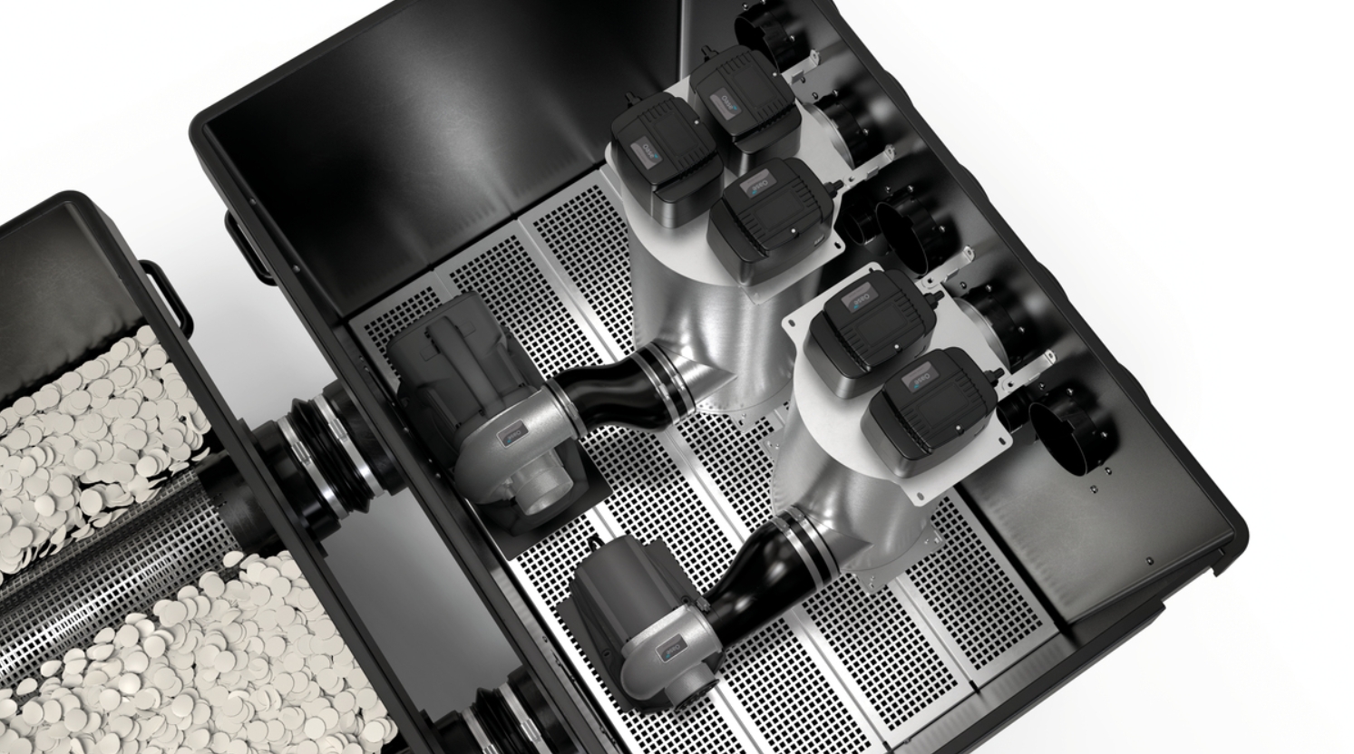 Aansluitingen uitgang: 4 x 2″ / 5 x DN 110